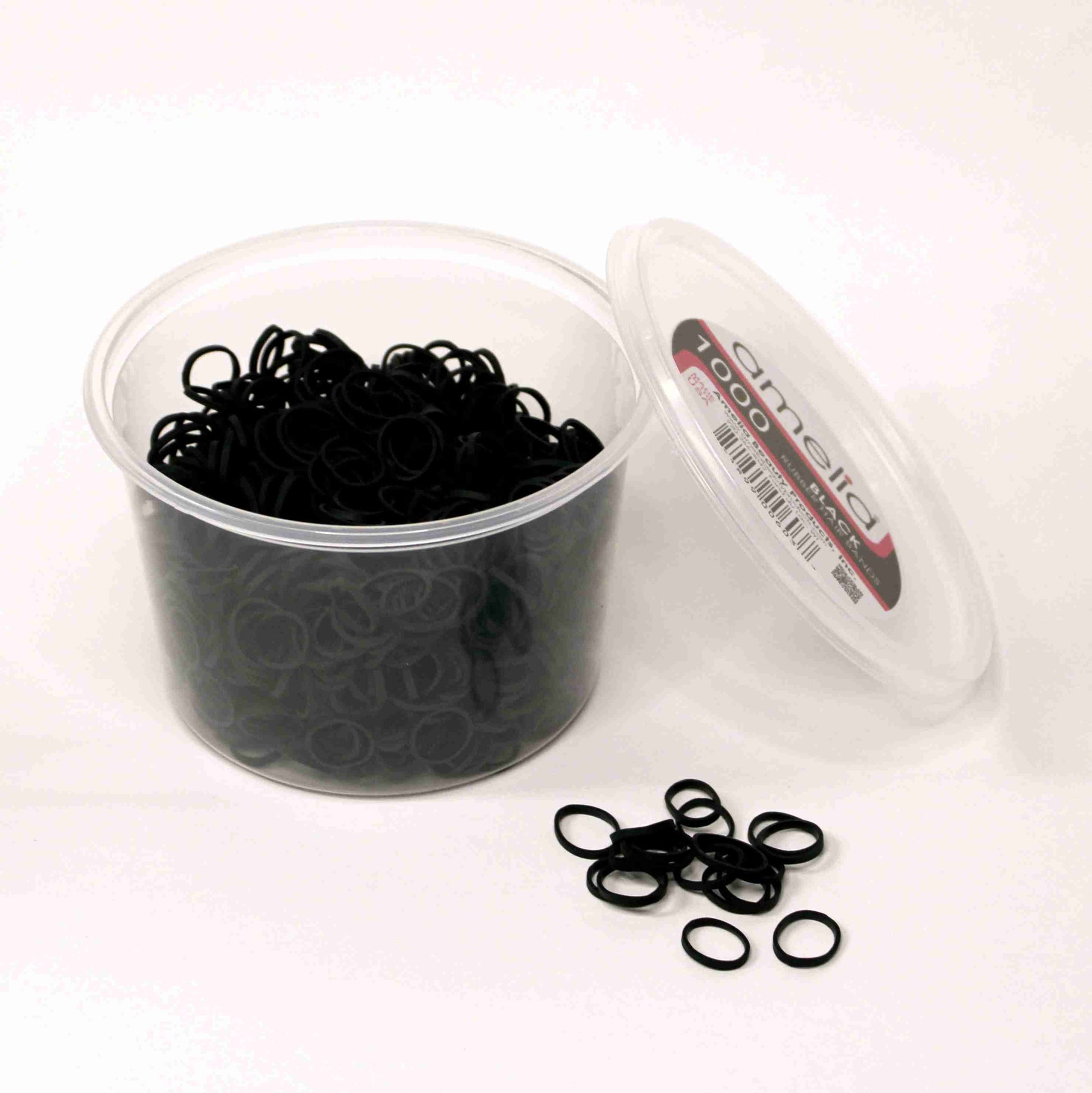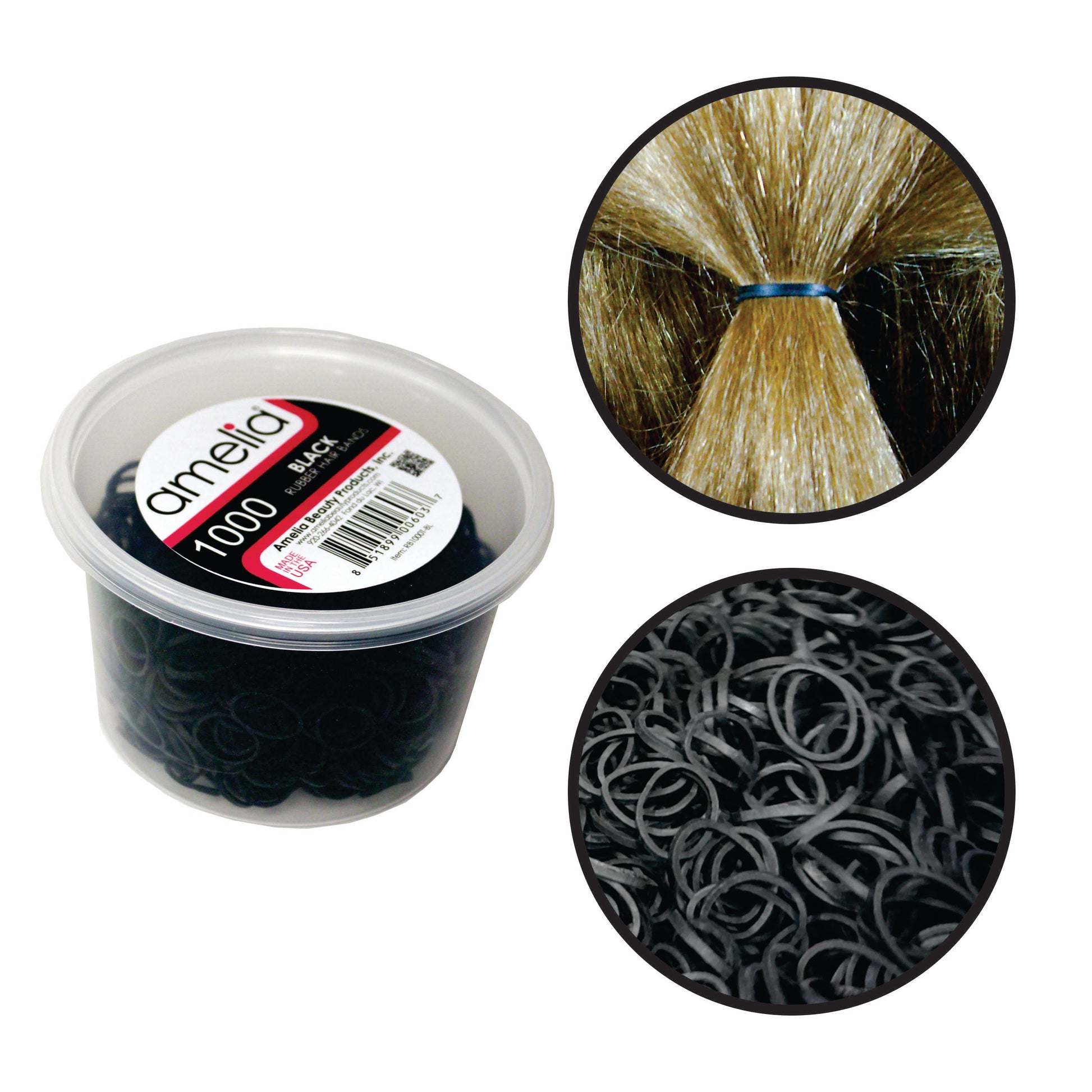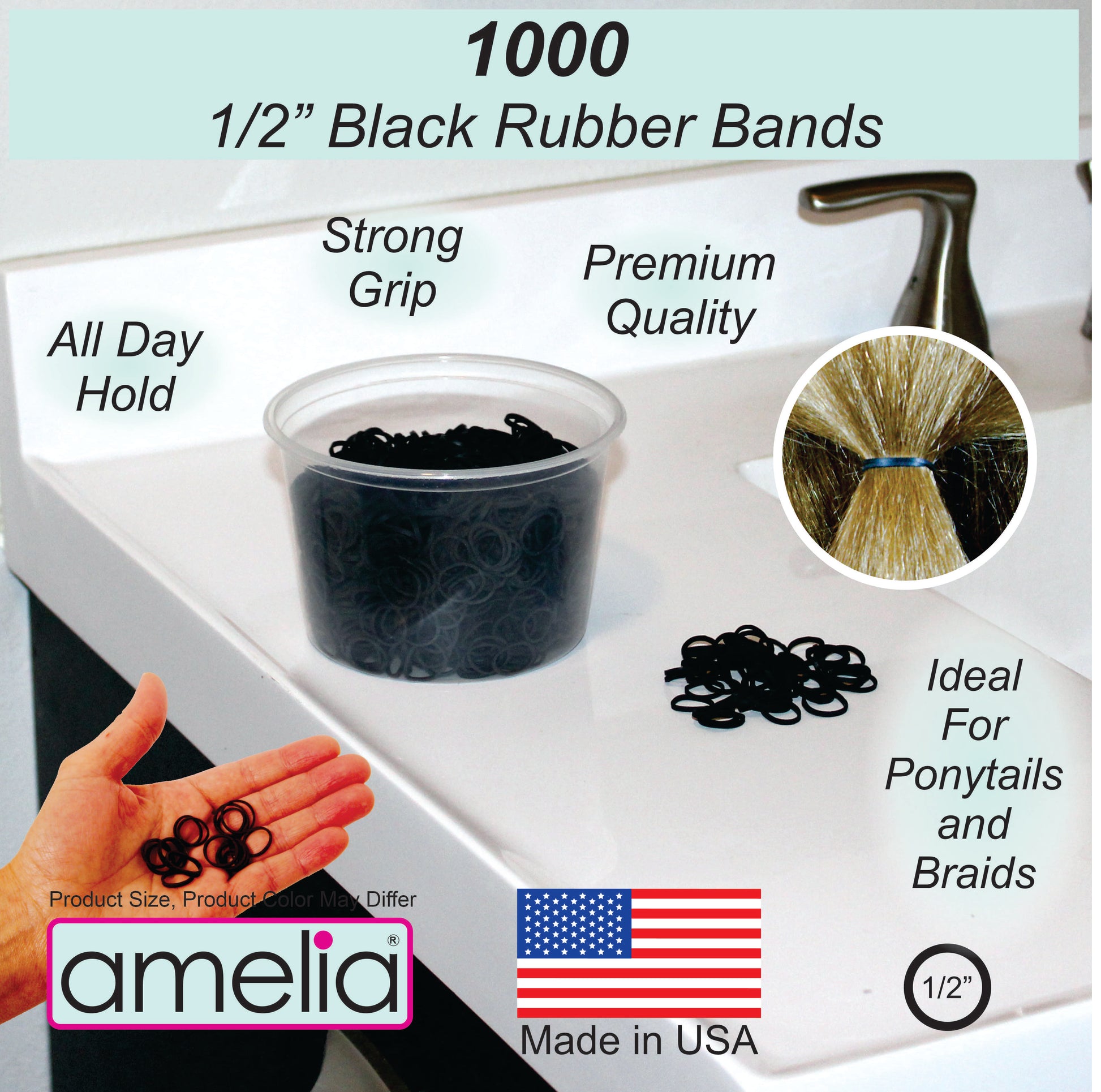 - PREMIUM QUALITY: 1000 Small Black 1/2in Elastic Rubber Hair Ties. Made in the USA. These Rubber Ponytail Holders stay tight all day and expand without tearing or ripping apart for maximum elasticity and durability.