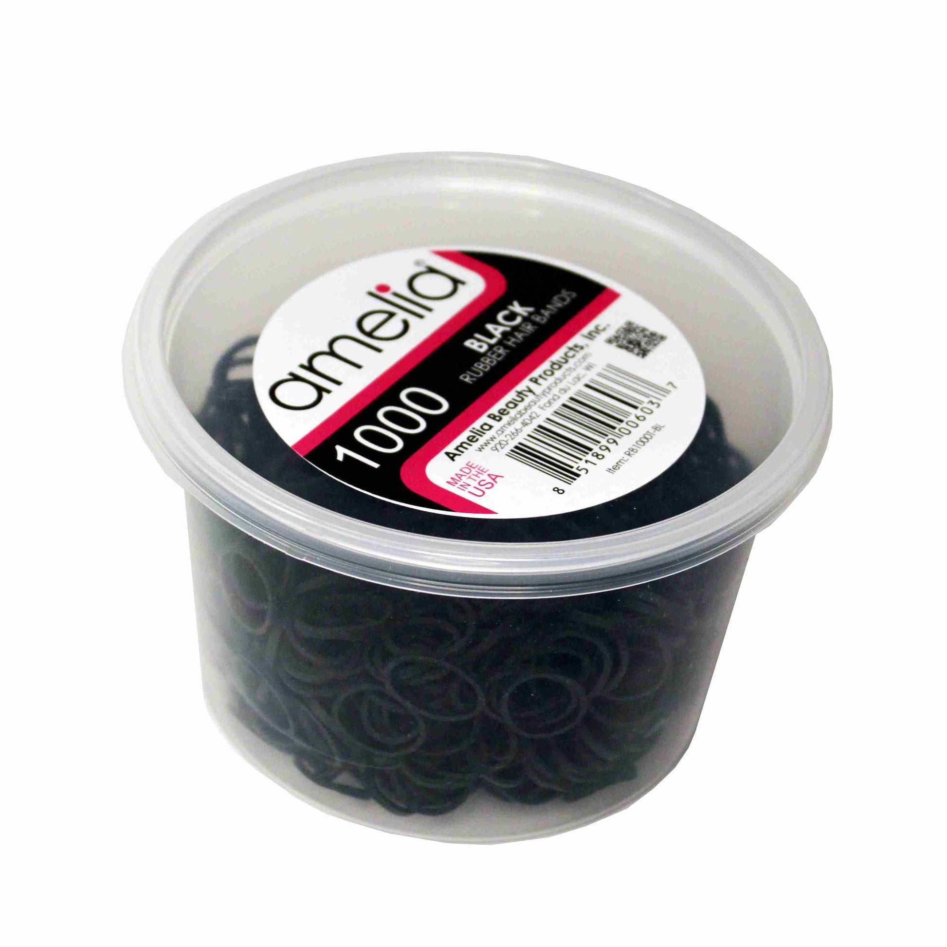 Amelia Beauty, 1000, 1/2in, Black Elastic Rubber Band Ponytail Holders that help you to create cute, fun and unique braids and hairstyles. Premium quality US made rubber hair ties that stay in place all day and are durable and strong enough for all ethnic styles including ponytails, braids, twists, dreadlocks and all hair types thick hair, thin hair, curly hair, beards, straight hair, long hair or short hair. For all Ages, Women, Men, Kids. Convenient clamshells keep the small rubber bands for hair clean and organized. An essential for daily styling and use around the home, office and work shop. Lazos de goma para el cabello para colas de caballo.