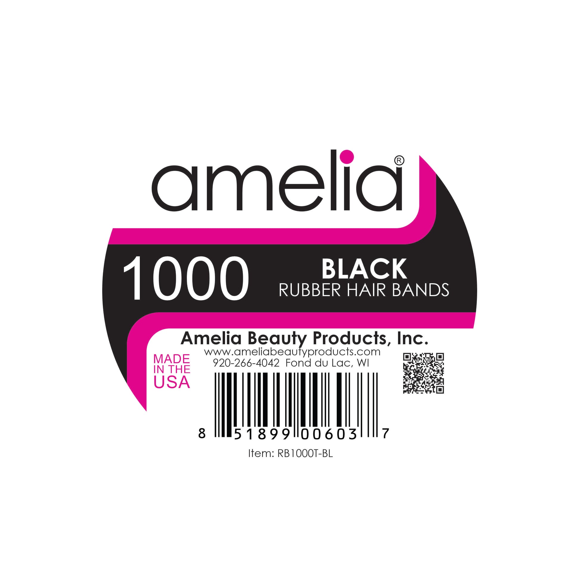 Amelia Beauty | 1/2in, Black, Elastic Rubber Band Pony Tail Holders | Made in USA, Ideal for Ponytails, Braids, Twists, Dreadlocks, Styling Accessories for Women, Men and Girls | 1000 Pack