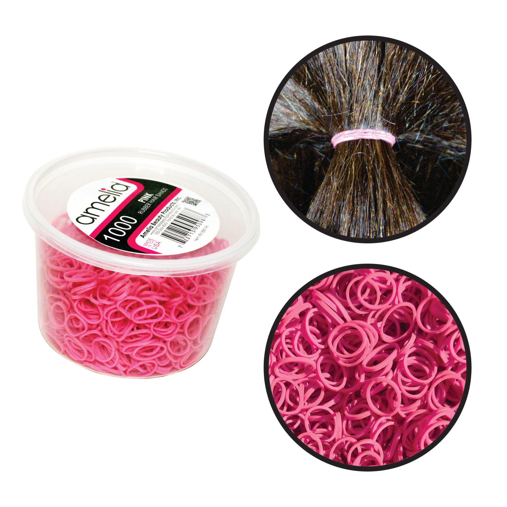 Amelia Beauty | 1/2in, Pink, Elastic Rubber Band Pony Tail Holders | Made in USA, Ideal for Ponytails, Braids, Twists, Dreadlocks, Styling Accessories for Women, Men and Girls | 1000 Pack