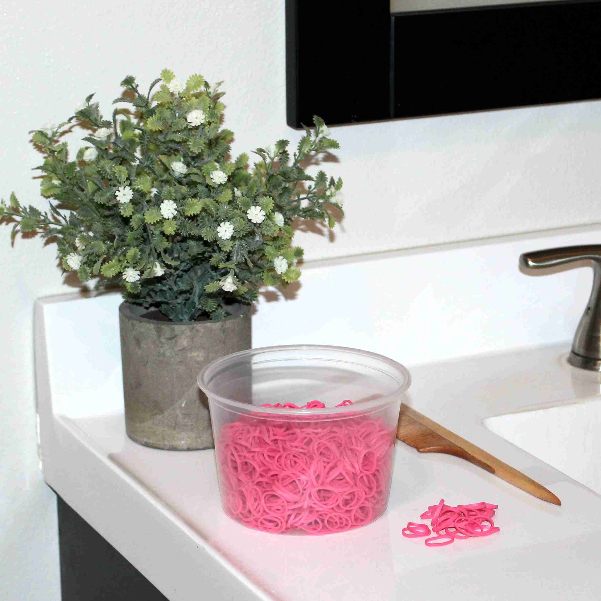 - PREMIUM QUALITY: 1000 Small Pink Fuchsia 1/2in Elastic Rubber Hair Ties. Made in the USA. These Rubber Ponytail Holders stay tight all day and expand without tearing or ripping apart for maximum elasticity and durability.