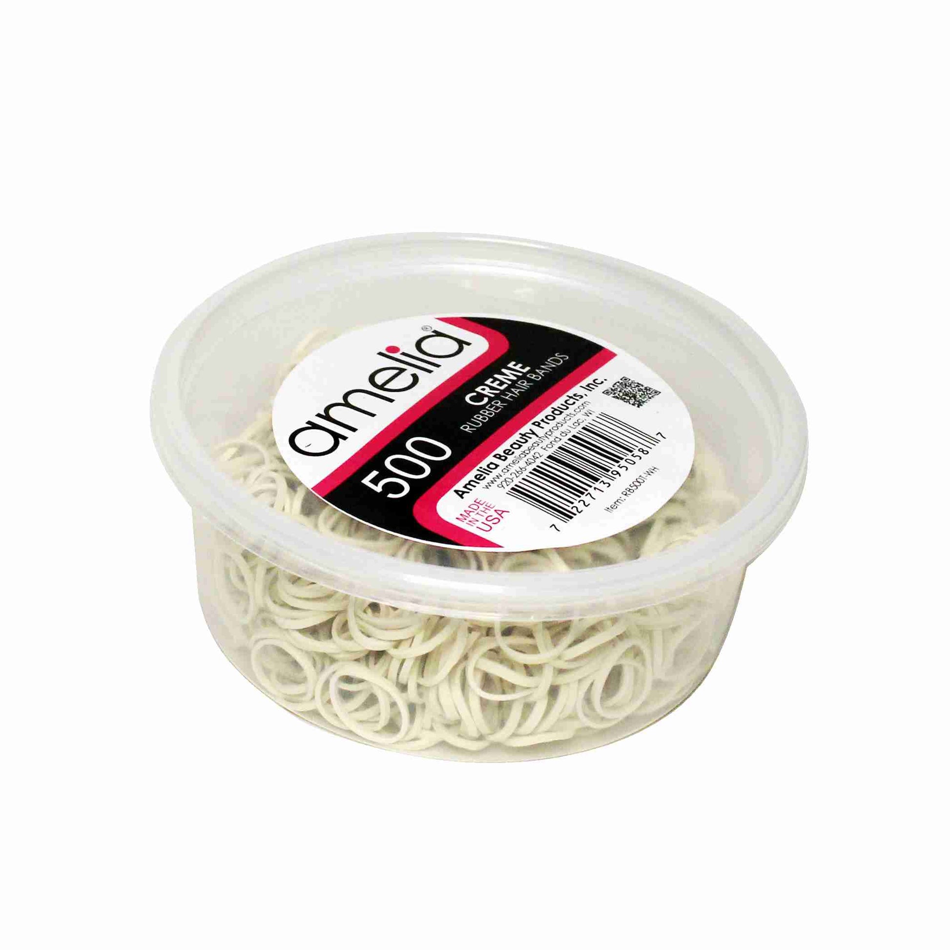 - PREMIUM QUALITY: 500 Small Creme 1/2in Elastic Rubber Hair Ties. Made in the USA. These Rubber Ponytail Holders stay tight all day and expand without tearing or ripping apart for maximum elasticity and durability.