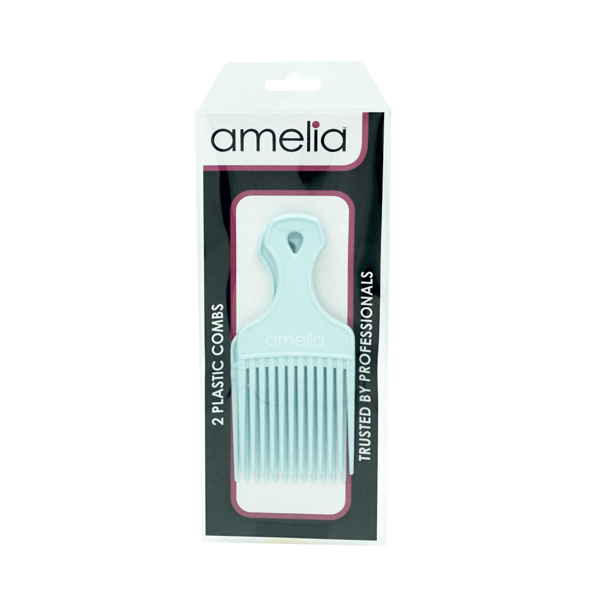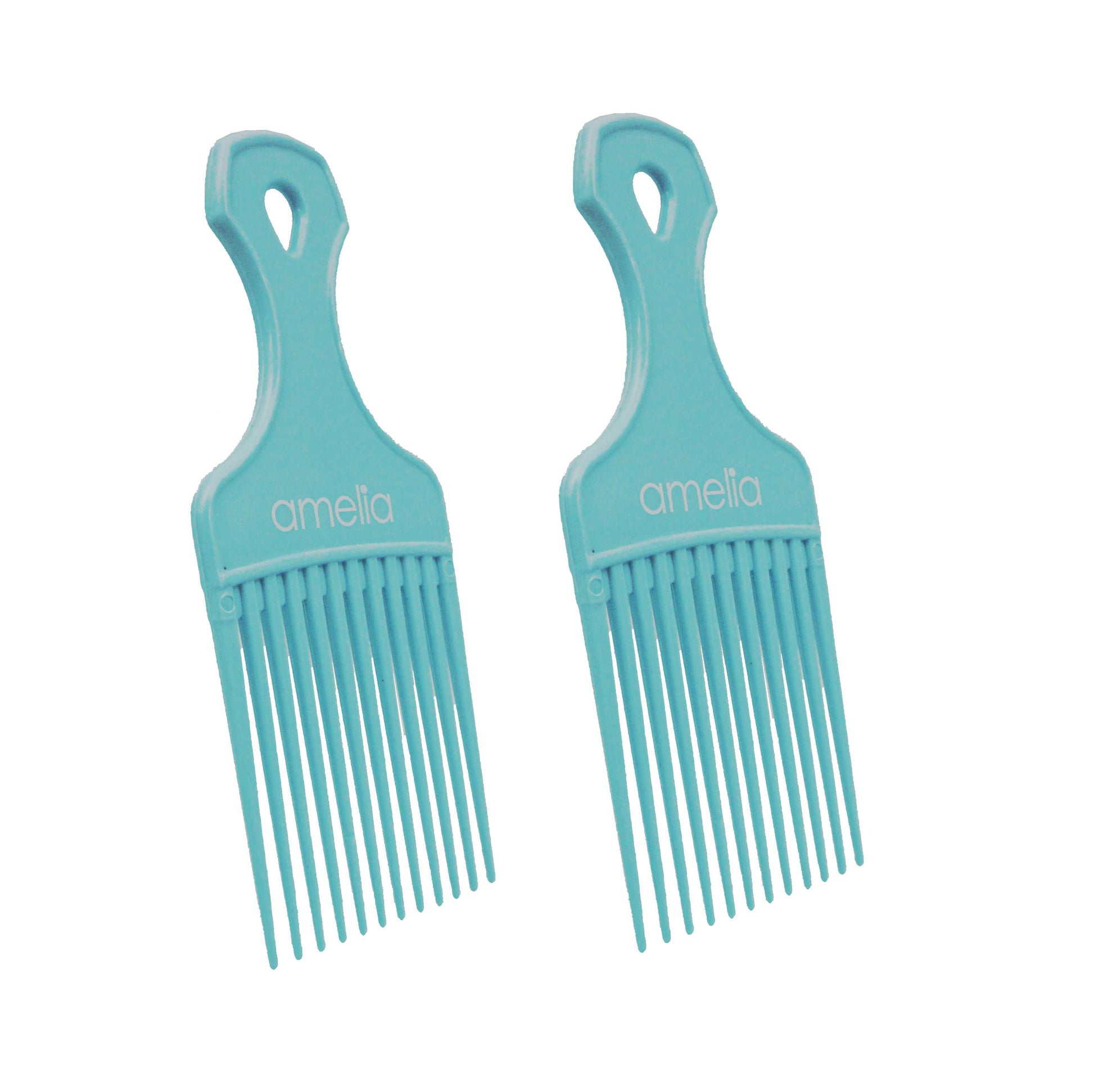 Amelia Beauty Curly 6in Sky Blue Wide Tooth Pick Comb, Package of 2 Combs. Made in USA. Professional Grade Hair Pick For All Hair Types and Ages. Smooth and Comfortable Seamless Design is Gentile on Hair and Does Pull or Damage Hair. Creates Volume, Detangles, Portable Salon Barber Shop Black Afro Pick Comb Hair Styling Tool. Wet or Dry Use, Dimensions 6" x2.5". Multi Combo Pack of 2 Combs peine de plástico para el cabello