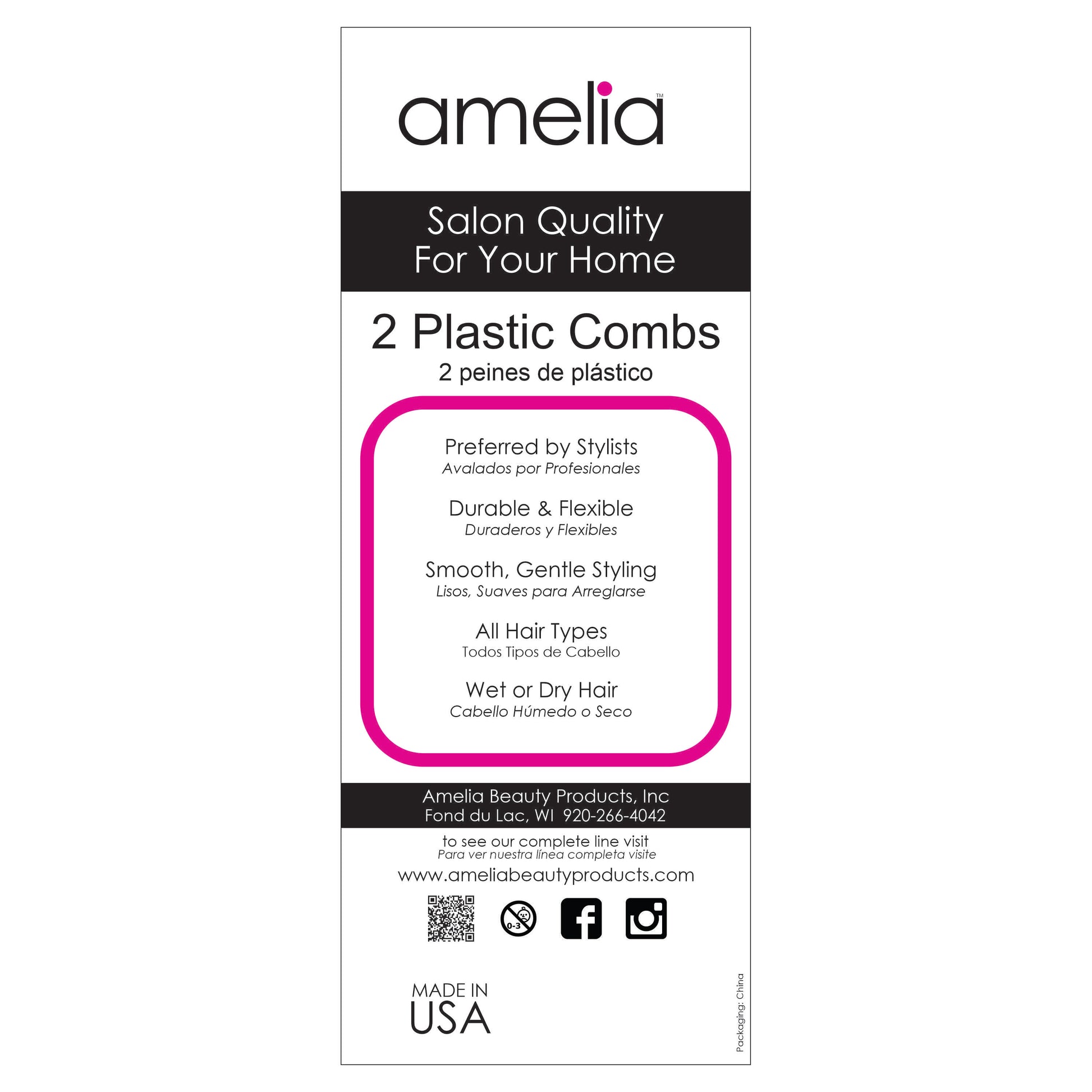 - HIGH QUALITY COMBS - Professional grade, US made, durable, sturdy, strong, lightweight, portable won't tangle hair and lose hair. Best for hairstyling, parting hair, back combing, hair coloring and post styling hair.