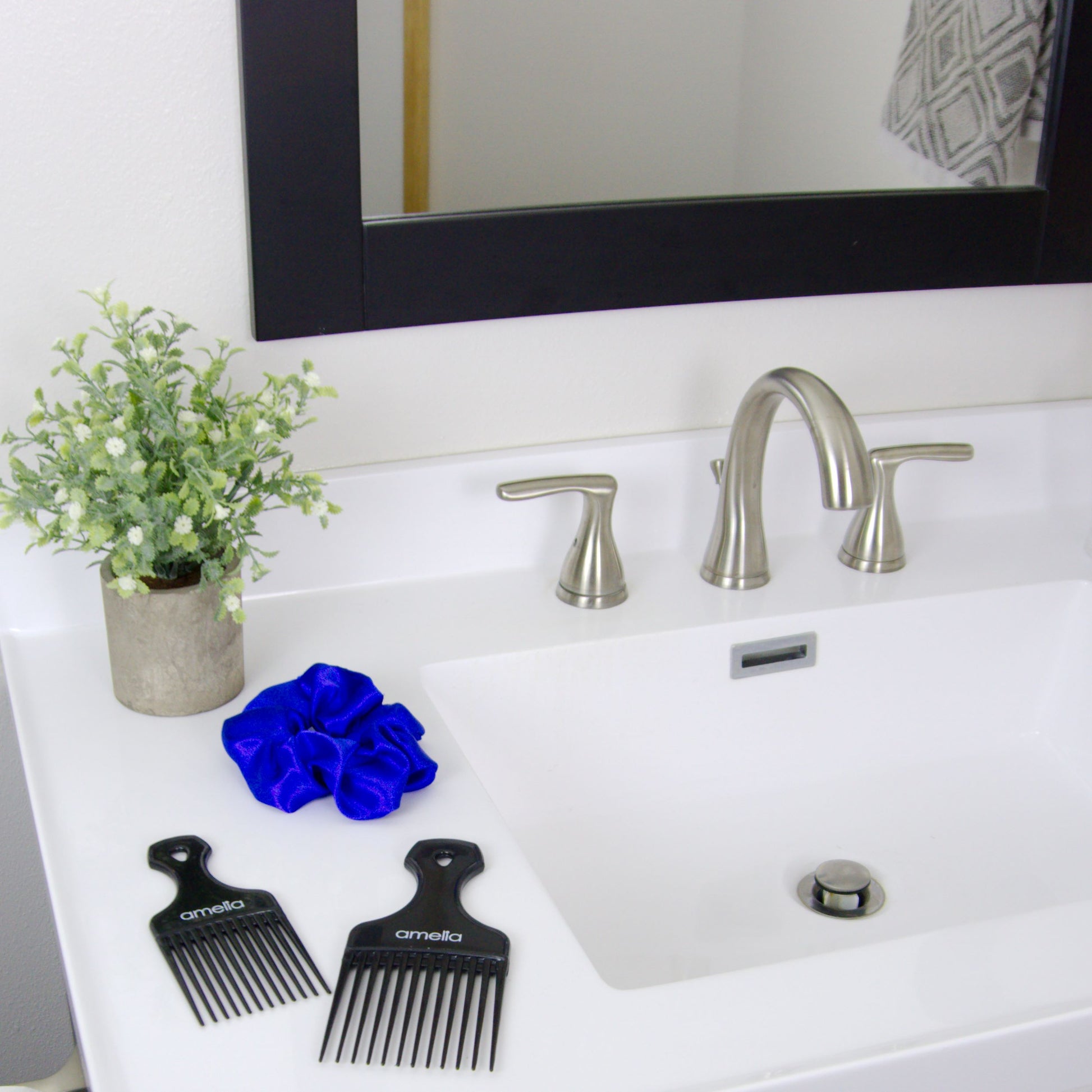 Amelia Beauty, 6in and 7in Curly Hair Wide Tooth Pick, Made in USA, Professional Grade Hair Pick Creates Volume, Detangles, Portable Salon Barber Shop Black Afro Pick Comb Hair Styling Tool, 2 Pack