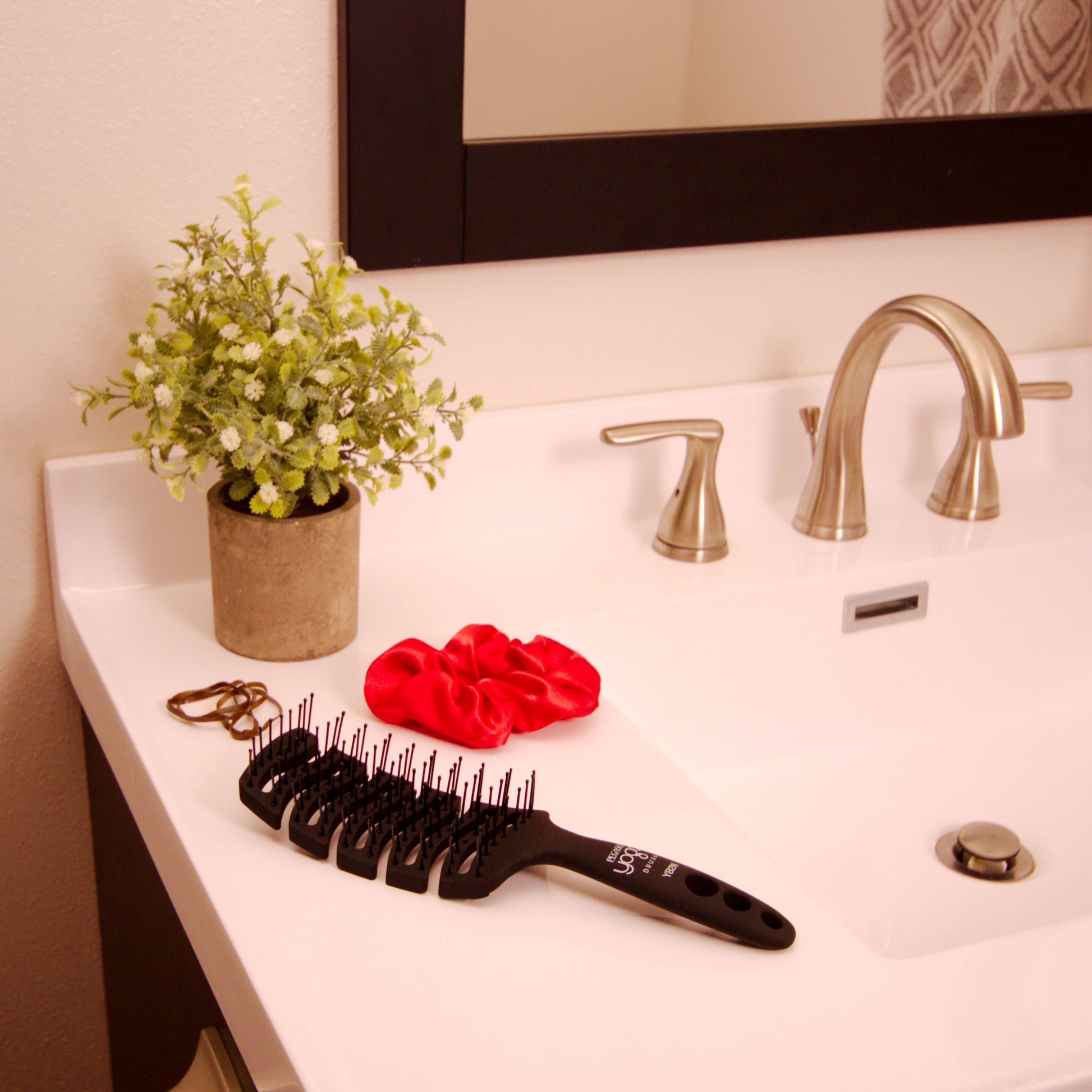 A Wavy and Flexible Brush, Uniquely Designed To Give Hairstyles a Professional Finish. The Arc Of This Brush Bends Perfectly Around Your Head To Smooth Out, Detangle, Clean and Add Shine To Hair.