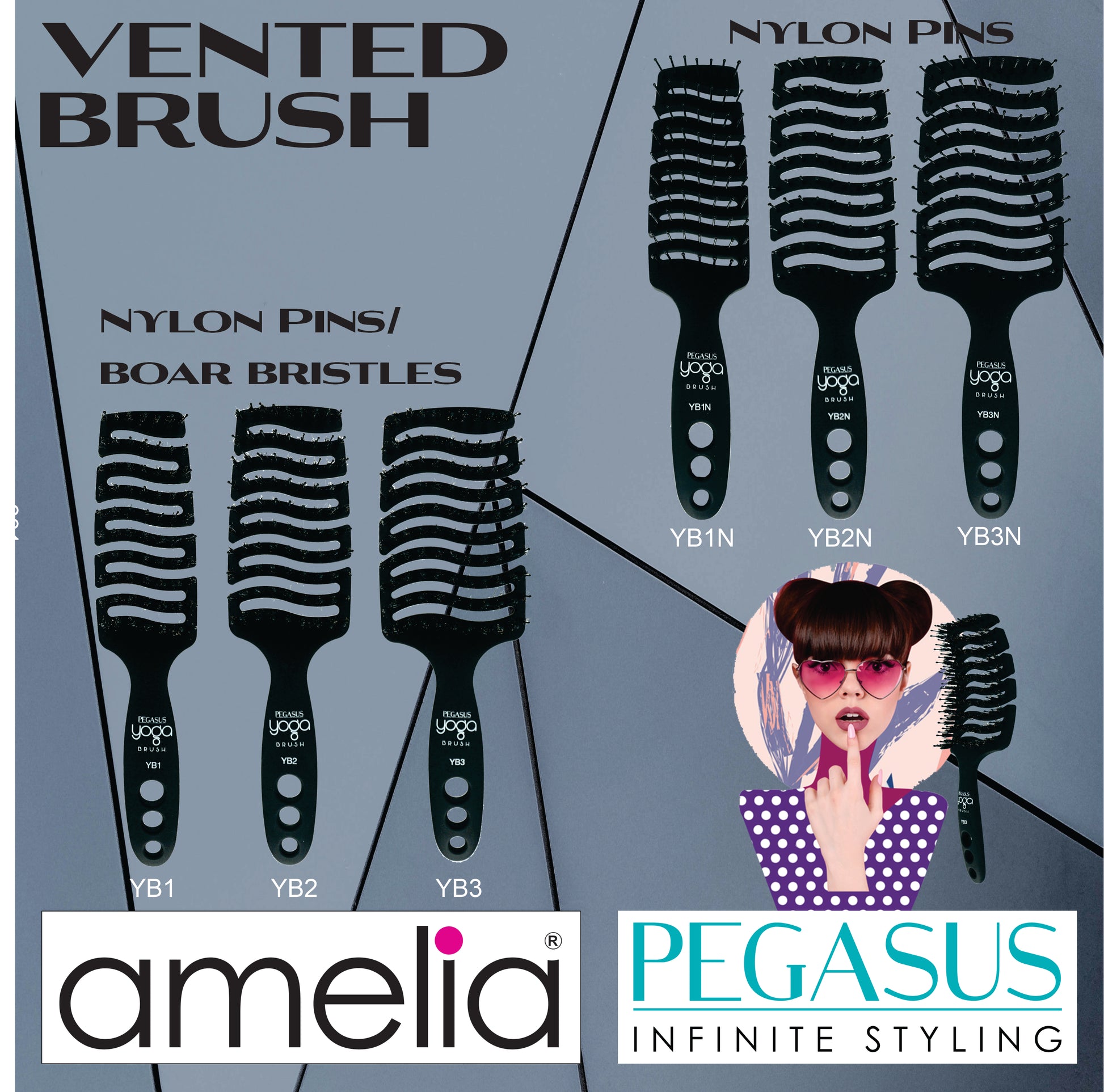 9in Flexible Vented Brush, Pegasus YB2N - Yoga Brush with Nylon Tipped Bristles