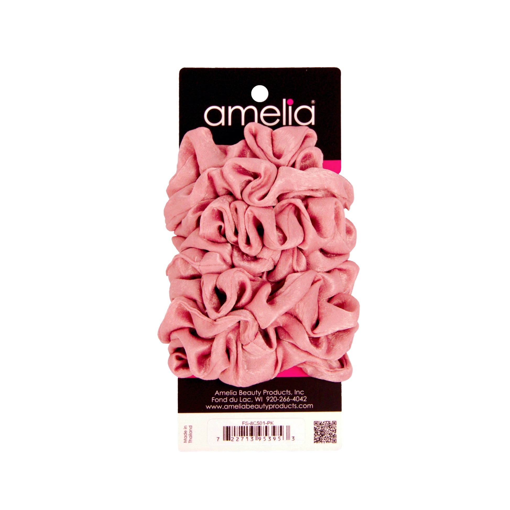 Experience all-day comfort with Amelia Beauty's 8 pack of 3in diameter Pink Crepe Material Scrunchies! Our smooth and durable design is perfect for any occasion, with a no-pull, wrinkle-free feature that's gentle on your hair. Built to last with a strong elastic core, these scrunchies are perfect for any hairstyle. Plus, they add a splash of color to spice up your style! Ideal for yoga, sports, work, or play, the medium crepe fabric reduces friction and minimizes frizz, pressure, and headaches. Perfect for all hair types and lengths. Try them today and feel the difference of the ultimate in soft and comfortable hair accessories!