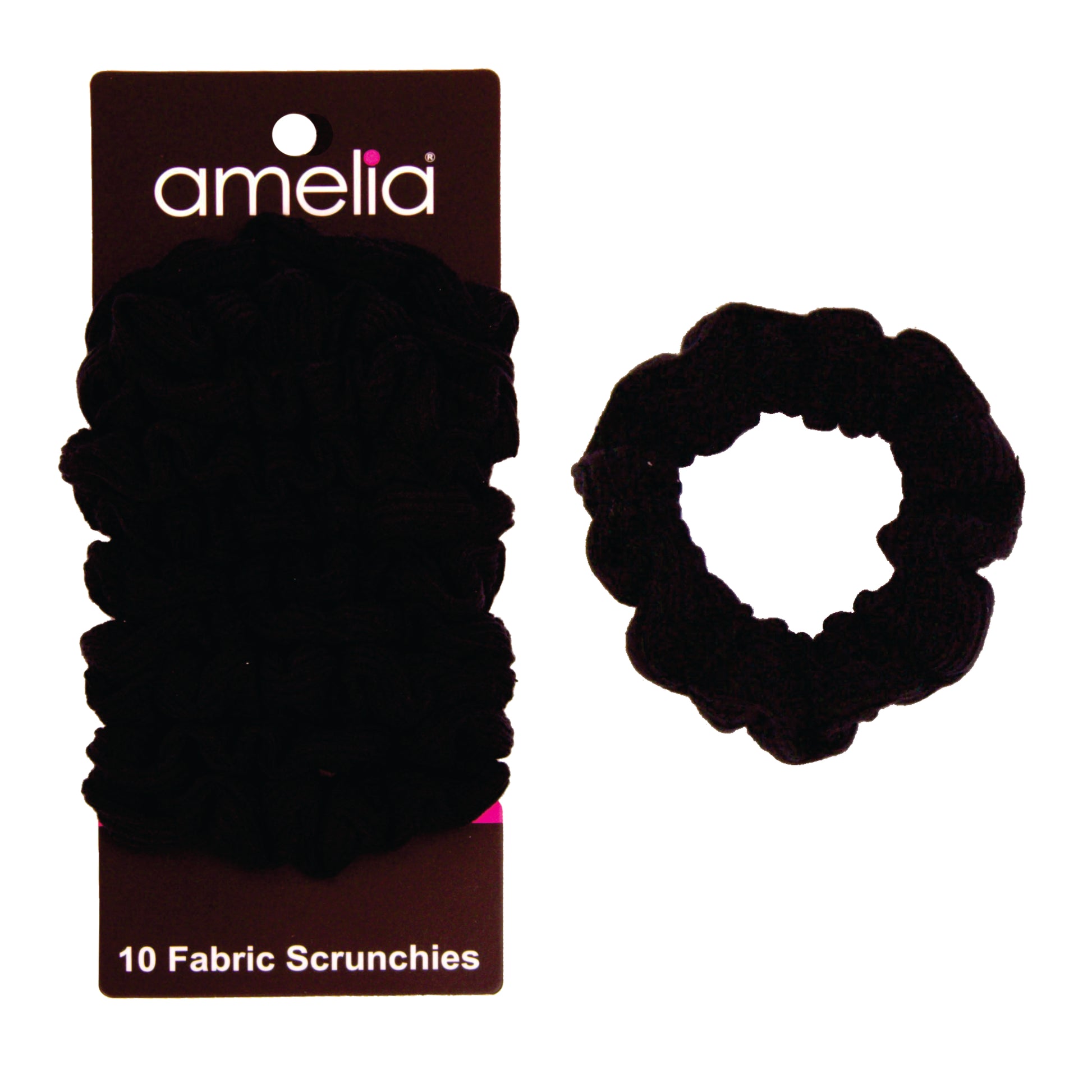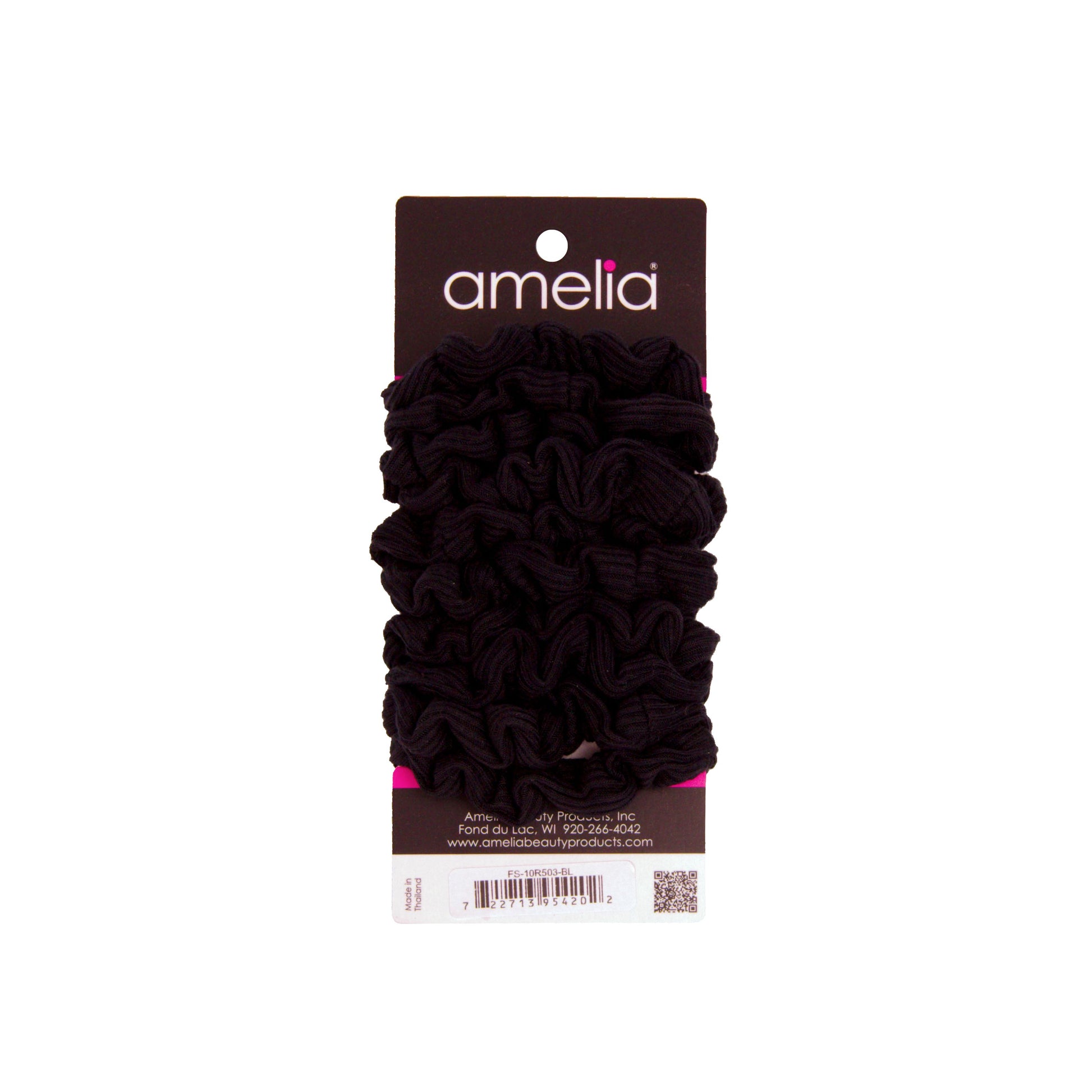 Amelia Beauty's Medium Black Ribbed Fabric Scrunchies - 10 Pack. The Ultimate Hair Solution!!