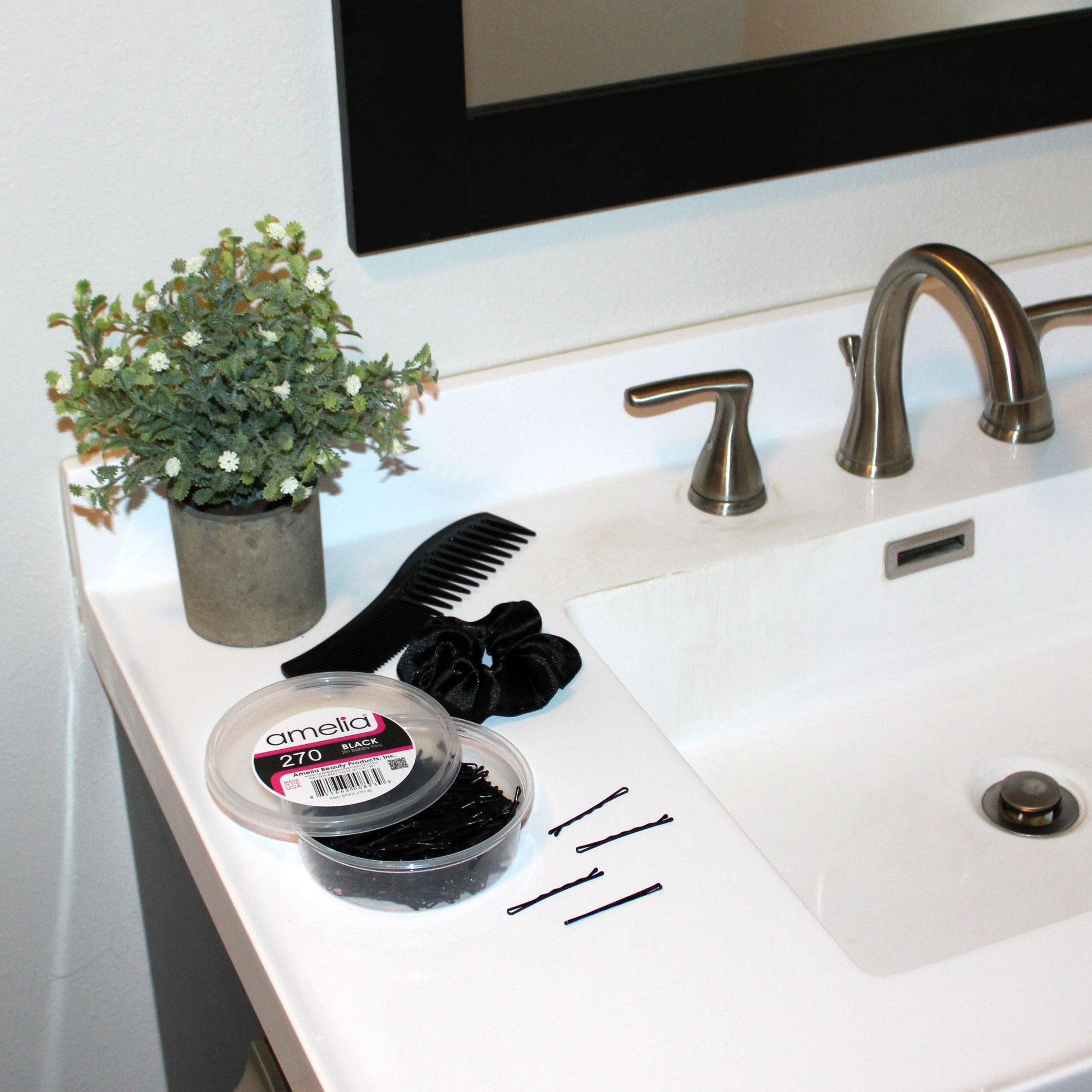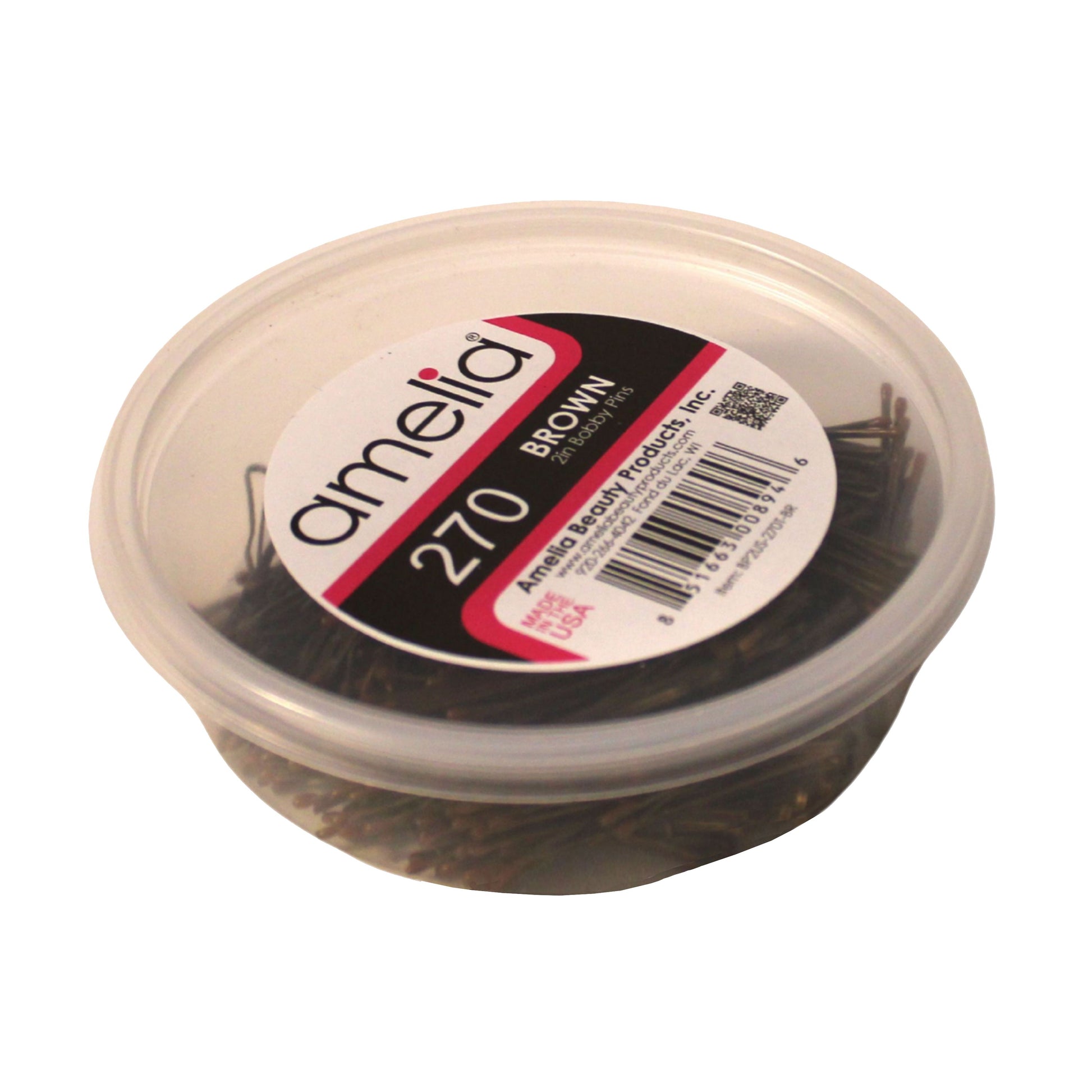 Each pack includes 270 brown bobby pins in a resealable container, making it easy to stay organized at home, in the salon, or on the go. Choose Amelia Beauty for professional quality, American-made hair accessories you can count on.